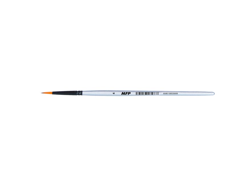 Štětec kulatý s jemným syntetickým vlasem tvarovaným do špičky a dřevěnou rukojetí. Díky syntetickým vláknům usnadňuje roztírání barev a dobře drží tvar. Vlákno je elastické a vyniká vysokými absorpčními schopnostmi. Je méně náchylný k poškození barvami a ředidly než štětec přírodní. Je také výrazně odolnjěší proti poškození či lámaní. Snadno se udržuje v čistotě, a proto vykazuje delší životnost. Hodí se jak pro školní využití, tak i pro různé malířské techniky a povrchy. Ideální pro malování detailů, tenkých linek nebo vybarvování. Štětiny jsou chráněny plastovou krytkou.