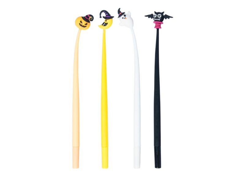 Zábavné gelové pero s halloweenskými motivy s modrou náplní. Pero má příjemný úchop a