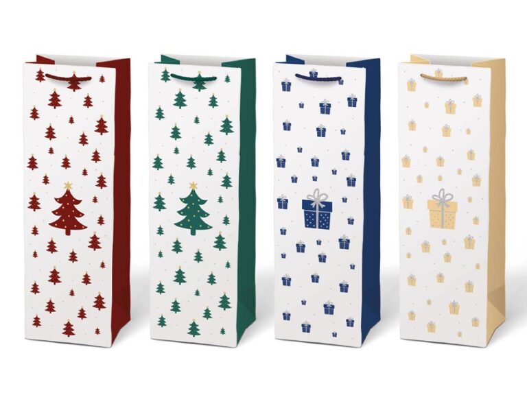 Vánoční dárková papírová taška T12 na víno nebo jinou lahvinku. Taška je opatřena pevným