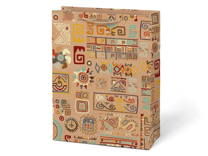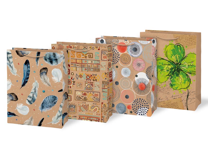 Papírová dárková taška M KRAFT z pevného kraftového papíru s barevným potiskem. Taška má