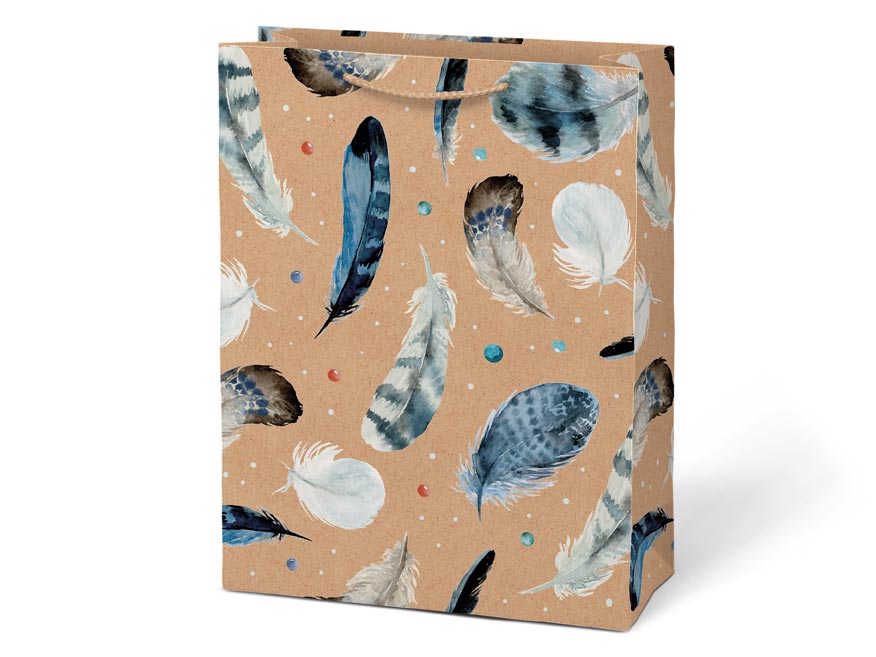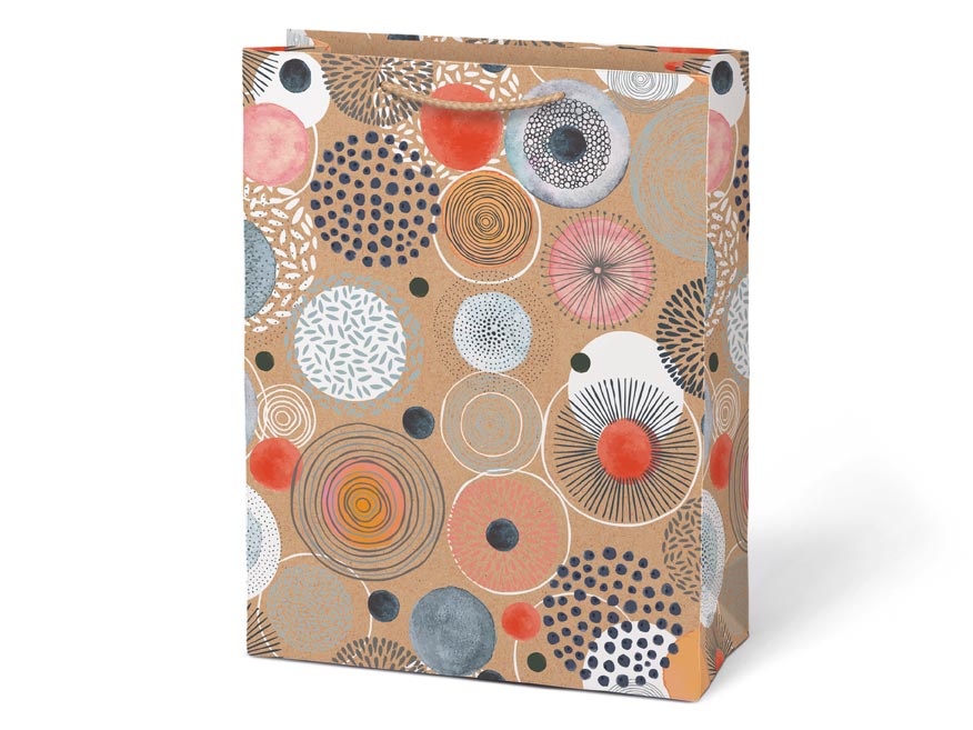 Dárková taška L KRAFT z pevného kraftového papíru s barevným potiskem.Taška má pletená textilní ucha a kartičku kam můžete napsat jméno nebo krátké věnování. Pokud nemáte čas balit dárek do dárkového balícího papíru tak právě pro Vás máme široký výběr dárkových tašek.
