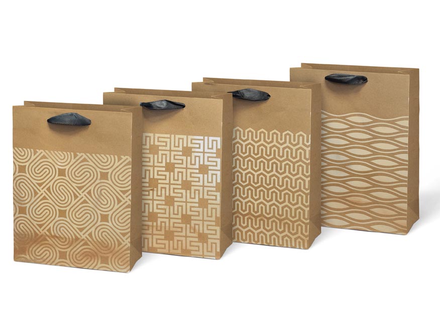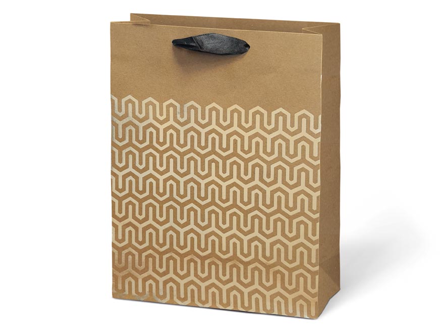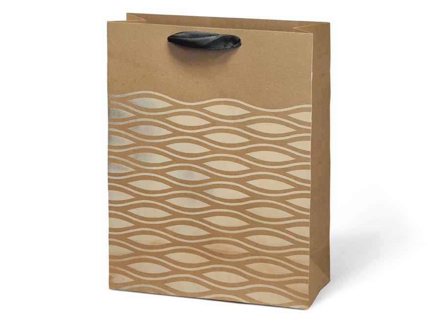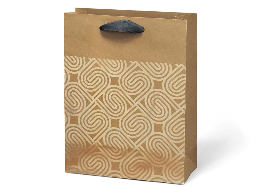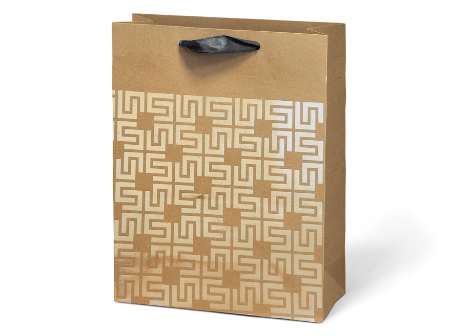 Dárková taška M KRAFT z pevného kraftového papíru s uchy z černé stuhy v mixu zlatých motivů. Krásný design zaručí spokojenost obdarovaného. Pokud nemáte čas balit dárek do dárkového balícího papíru tak právě pro Vás máme široký výběr dárkových tašek.