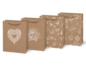 Objevte dárkové tašky M KRAFT, které spojují přírodní kouzlo s praktickým využitím! S jemnými bílými vzory a provázkovými uchy promění každé překvapení v malý designový zážitek. Perfektní volba pro každou příležitost – od narozenin po svatby a díky přírodnímu vzhledu zaujmou svou jednoduchou elegancí. Stylové, pevné a šetrné k přírodě – tašky, které zanechají dojem! MOTIV: - srdce - leknín - vážky, motýli, včely - květy Barva: hnědá/přírodní Materiál: kraftový papír Rozměr: 190 x 250 x 90 mm Dodáváme v mixu po 4 ks dle skladové zásoby. Uvedená cena je za 1 ks.