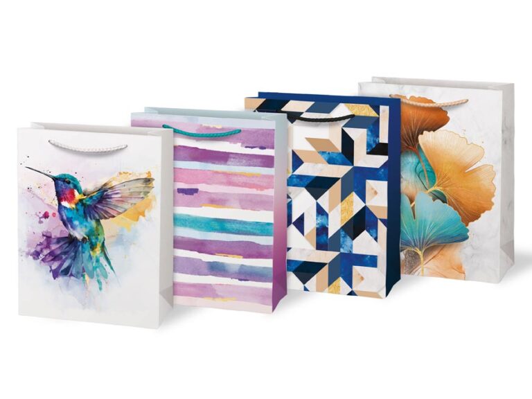 Dárková papírová taška MFP L LUX – květy, perly a jemnost Dárková papírová taška MFP L LUX spojuje jemnost a eleganci v dokonale vyváženém designu. Kombinuje motivy květů, perel a peří, které působí lehce, žensky a slavnostně. Balení s ní je snadné a efektivní – dárek stačí vložit a okamžitě získá reprezentativní podobu. Pletená textilní ucha jsou nejen praktická, ale zároveň tašce dodávají jemný detail, který podtrhuje její celkový vzhled. Motiv: květy, perly Rozměry: 260 x 320 x 120 mm Dodáváme v mixu čtyř vzorů dle aktuální skladové dostupnosti. Uvedená cena je za 1 ks.
