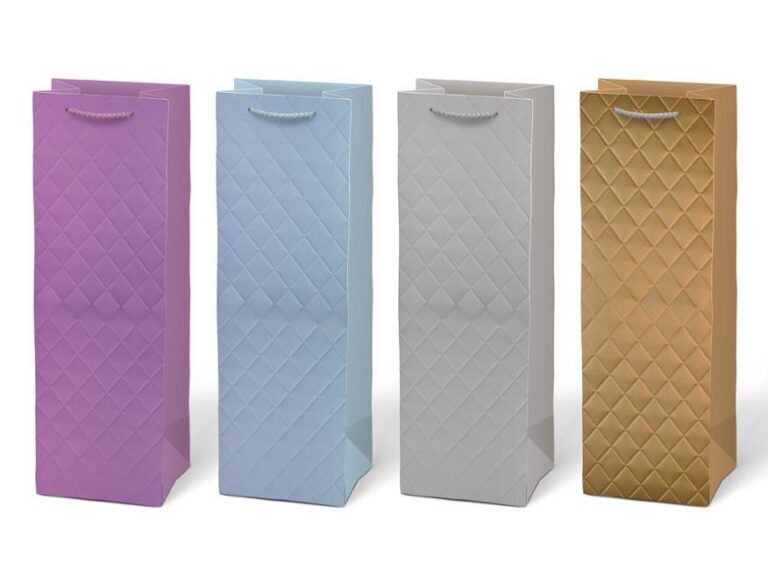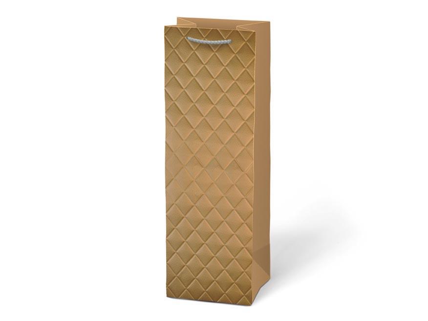 Dárková taška MFP T12 LUX je ideální pro elegantní zabalení lahve vína, sektu nebo jiného nápoje. Díky jednoduchému reliéfnímu vzoru působí decentně, ale zároveň slavnostně – perfektní volba pro narozeniny, výročí i firemní dárky.