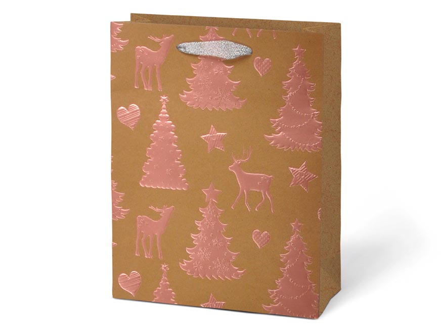 Vánoční papírová dárková taška L LUX KRAF s vánočními motivy je skvělou volbou pro každého, kdo hledá stylový a praktický způsob balení dárků. Je vyrobena z pevného kraftového papíru, který zaručuje nejen vysokou odolnost, ale také atraktivní vzhled. Taška je vybavena textilními uchy pro pohodlné přenášení a obsahuje kartičku, na kterou můžete napsat jméno obdarovaného nebo krátké přání.