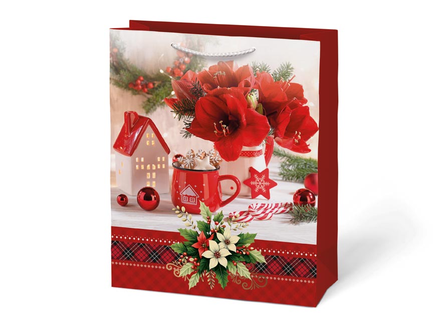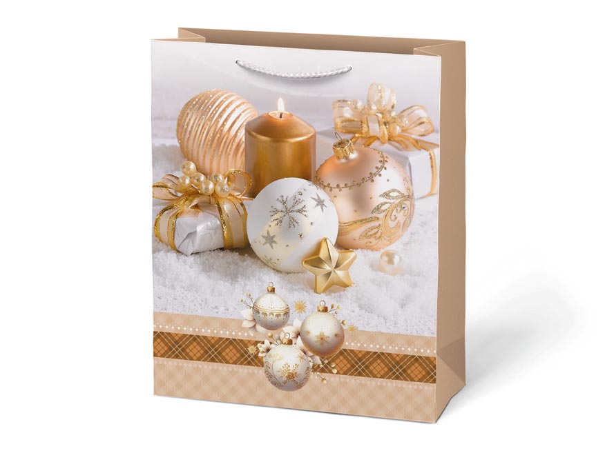 Vánoční dárková papírová taška T5 s vánočními motivy je dokonalým spojením elegance a praktičnosti. Taška je vhodná na balení všech druhů dárků, od malých překvapení po větší předměty, a přidává jim kouzlo sváteční atmosféry. Je skutečně nepostradatelným pomocníkem, když se balení dárku do klasického balicího papíru zdá být příliš obtížné. Její robustní ucha zajišťují pohodlné a bezpečné přenášení.