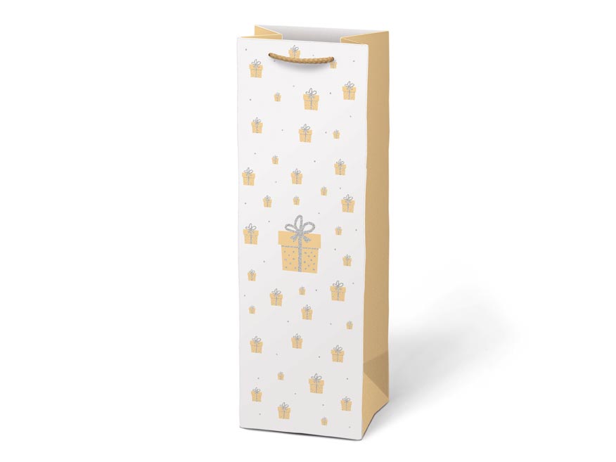 Vánoční dárková papírová taška T12 na víno nebo jinou lahvinku. Taška je opatřena pevným uchem pro snadné nošení. Pokud nemáte čas balit dárek do dárkového balícího papíru tak právě pro Vás máme široký výběr dárkových tašek.