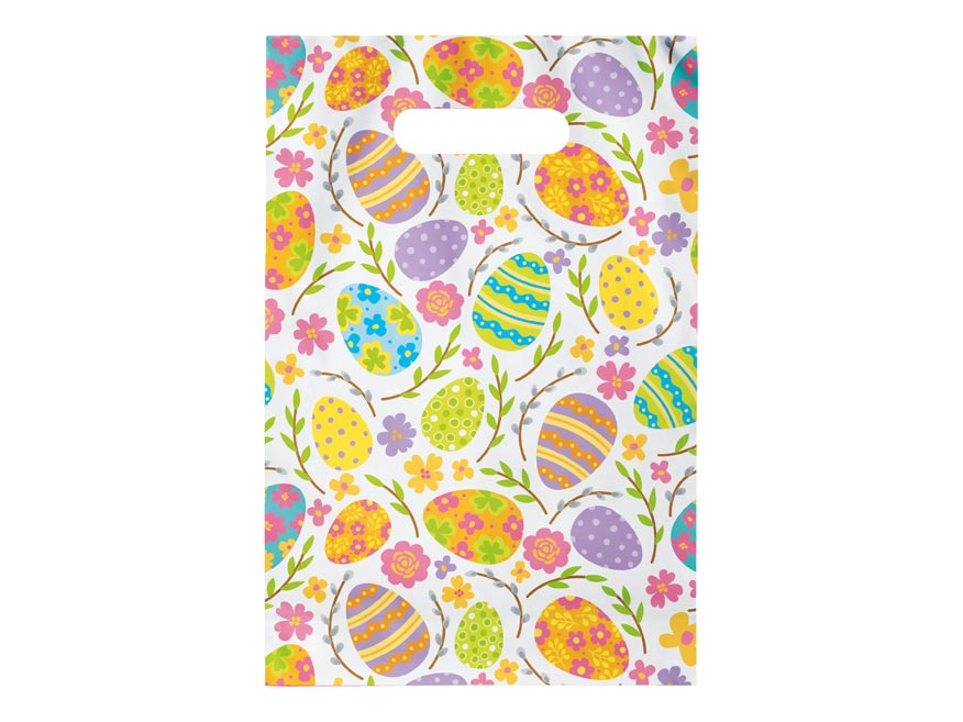 Velikonoční taška s průhmatem a motivem kraslic. Ideální pro vytváření čokoládových balíčků pro děti!