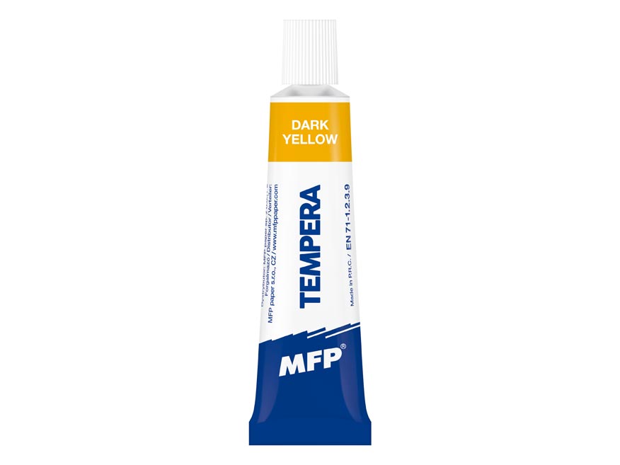 Temperová barva MFP kusová – tmavě žlutá. Namalujte si s dětmi obrázek pomocí temperových barev, které vynikají jasnou barevností. Děti můžou malovat štětcem, ale i prsty.