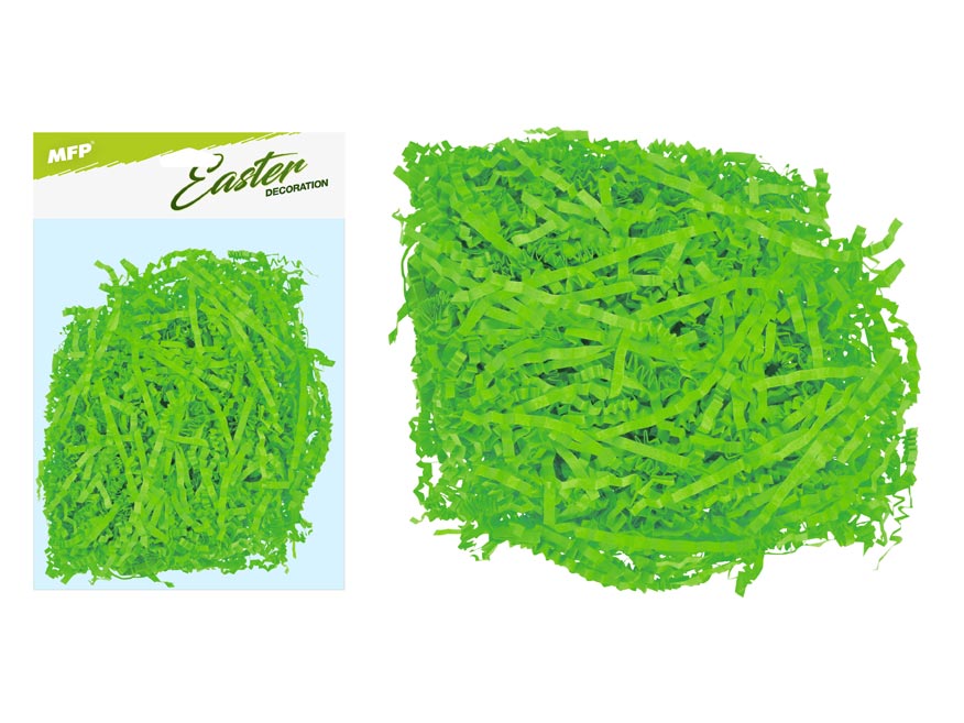 Dekorační papírová tráva je ideálním pomocníkem při vytváření různých dekorací. Vyrobte si originální jarní nebo velikonoční dekoraci. Může sloužit například jako ozdoba do květináčů, při tvorbě věnců, lze také využít ve floristice či při aranžování. Tráva je vyrobena ze zeleného papíru.