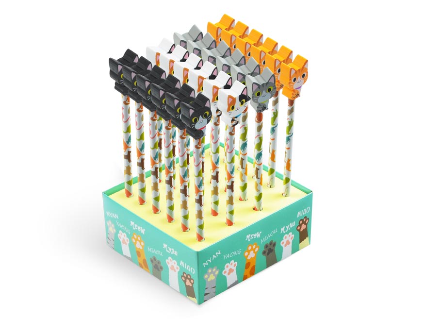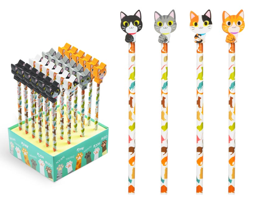 Roztomilá grafitová tužka s gumou na konci, mix barev s motivem kočky.