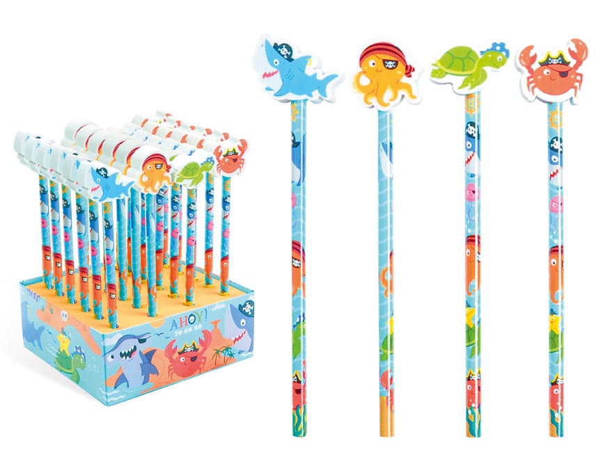 Grafitová tužka s gumou na konci, mix motivů mořských živočichů.