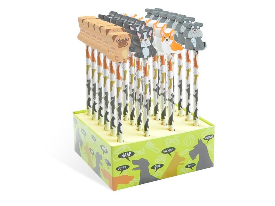 Roztomilá grafitová tužka s gumou na konci, mix barev s motivem psa.
