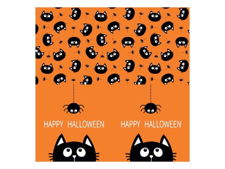 MOTIV: kočičky, pavouci a nápis „HAPPY HALLOWEEN“