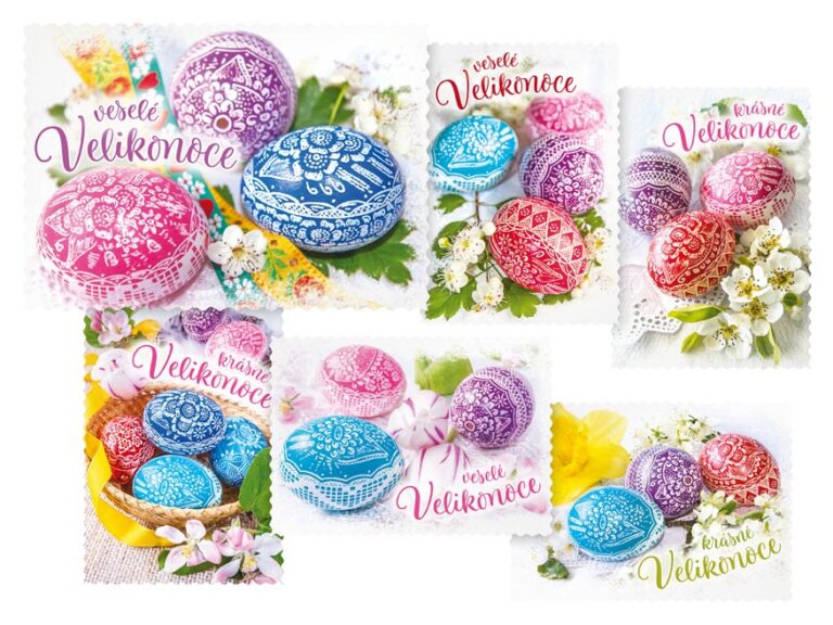 Pohlednice s velikonočním motivem. Text na zadní straně obsahují 4 pohlednice z 6. Text