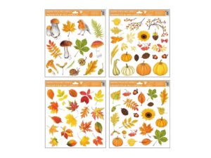 Dekorační okenní fólie s podzimními motivy, jako jsou barevné listy, dýně, houby, šišky a podzimní květiny. Je ideálním doplňkem pro vytvoření útulné atmosféry. Perfektní pro podzimní výzdobu v domácnostech, školách či komerčních prostorech, kde dodají prostředí nádech přírody a podzimu. Fólie je snadno aplikovatelná na okna, zrcadla nebo jiné hladké povrchy a nezanechává po odstranění žádné stopy navíc je opakovaně použitelná.