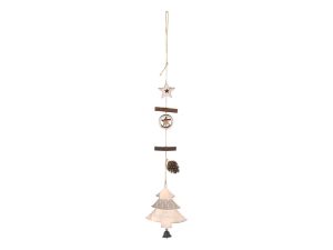 Vánoční závěs stromek vyrobený z přírodních materiálů. Součástí je šiška a hvězdy. Vhodný na zavěšení do dvěří, do okna nebo na zeď. Dodáváme v sáčku se závěsem. Uvedená cena je za 1 ks.