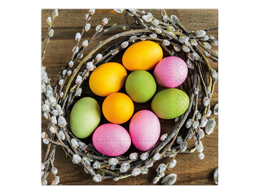 Papírový velikonoční ubrousek. Ubrousky s motivem kočiček a vajíček vykouzlí tu správnou velikonoční náladu u vás doma. Ubrousek je kvalitní z třívrstvého papíru. Vhodný i na ubrouskovou techniku.