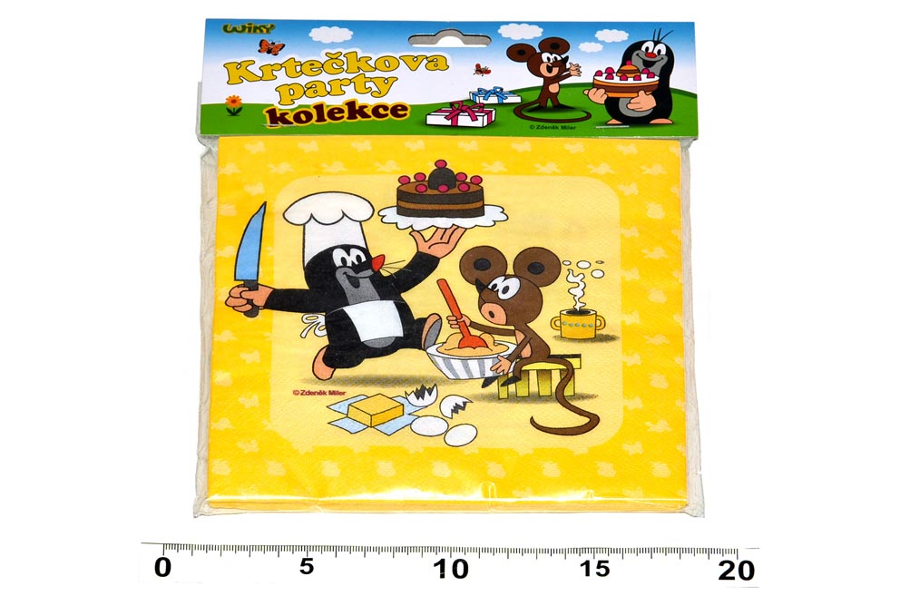 Párty dekorace s motivem Krtečka a jeho kamarádů. Takový ubrousek s Krtečkem udělá na každé párty velkou parádu. Velikost: 33 cm