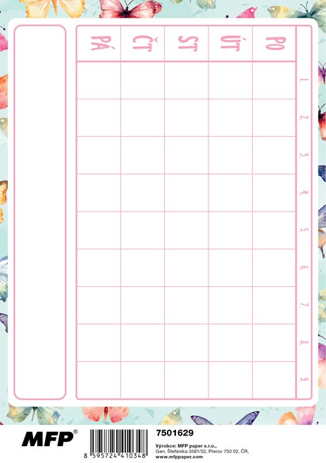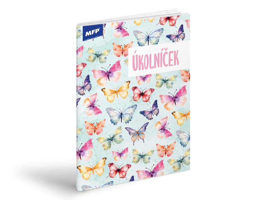 Pestrobarevní motýli na obálce přinesou kouzelnou náladu do každého školního dne a zapisování úkolů se promění v zábavu.