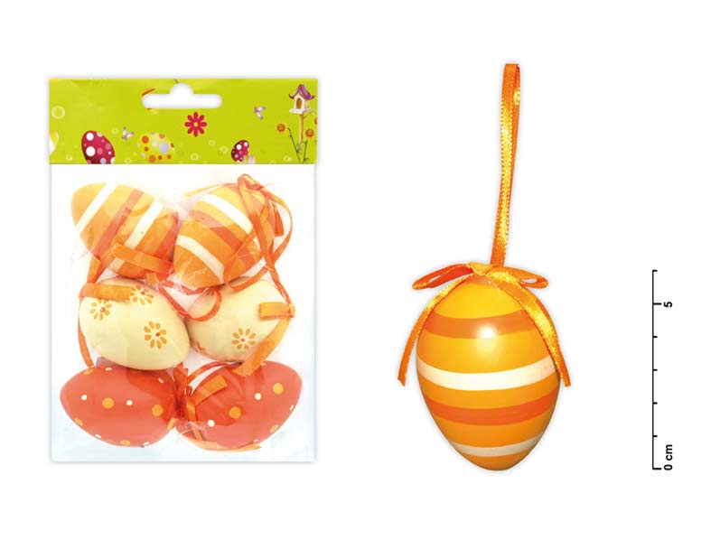 – 6 ks plastových vajíček s malovanými motivy v různých odstínech oranžové barvy – vajíčka mají provázek na pověšení