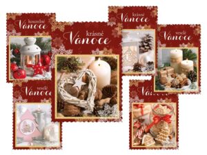 Pohlednice s vánočním motivem. Text na zadní straně obsahují 4 pohlednice z 6. Text na přední straně Kouzelné Vánoce, Veselé Vánoce, Krásné Vánoce, Text na zadní straně: Pohlednice 1: Pokojné vánoční svátky a požehnaný nový rok plný radosti a štěstí přeje Pohlednice 2: Vánoční svátky prožité v pokoji a radosti z Ježíšova narození přeje Pohlednice 3: Příjemné prožití vánočních svátků a úspěšný nový rok přeje Pohlednice 4: Krásné prožití vánočních svátků a vše nejlepší do nového roku přeje Pohlednice 5, 6 bez textu Text: 4/6 Povrchová úprava: výsek Papír: pohlednicový karton 240 g Dodáváme v mixu po 6 ks dle skladové zásoby. Uvedená cena je za 1 ks.