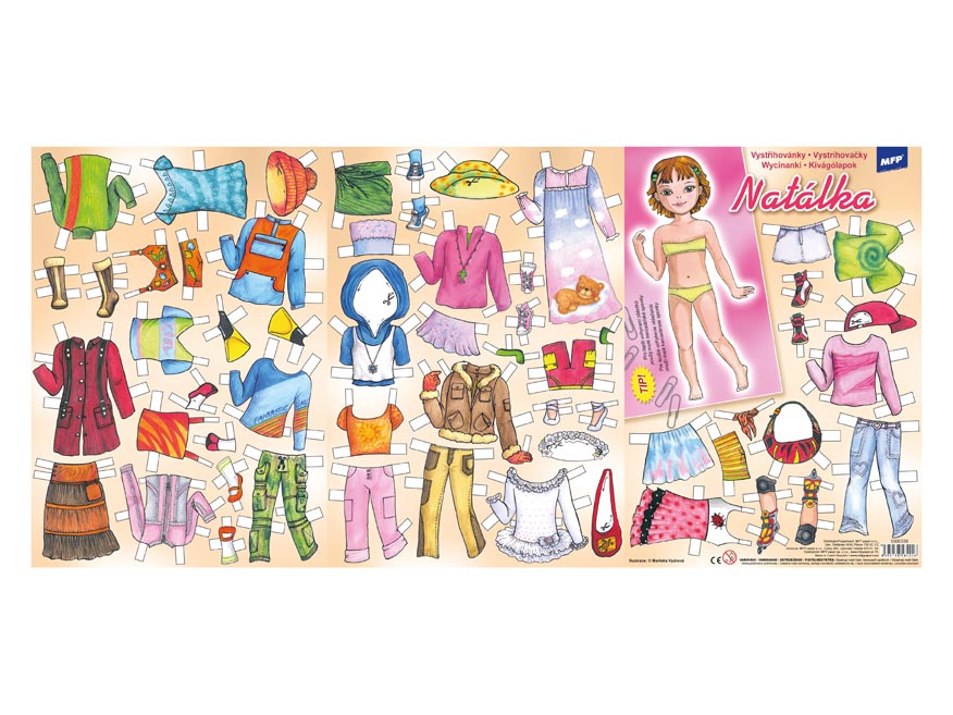 Vystřihovánky s holčičkou Natálkou, vhodné pro mladé slečny. Obleč si Natálku podle svého vlastního vkusu. Vystřihovánky jsou na 2 listech formátu A4. Najdeš zde holčičku, spoustu různého oblečení a doplňků. Vystřihovánky rozvíjejí kreativitu dětí pomocí různých tvarů, barev a také zlepšují motoriku ruky.