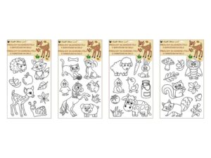 Set obsahuje 14 pěnových razítek, 4 barevné podušky a blok plný zábavných aktivit k luštění a vyplnění.
