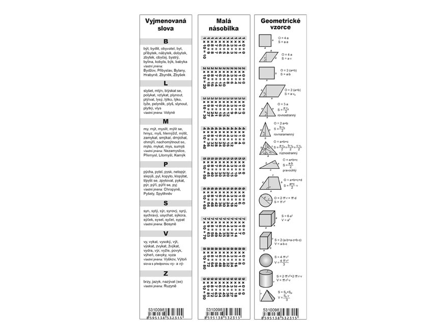 Máš ráda knížky a čtení? Pak ti nesmí chybět papírová záložka do knihy! Na přední straně je každá záložka ilustrována odlišnými motivy, nechybí zde ani pravítko, z druhé strany můžeme najít různé školní pomůcky pro děti – vyjmenovaná slova, malou násobilku, geometrické vzorce.
