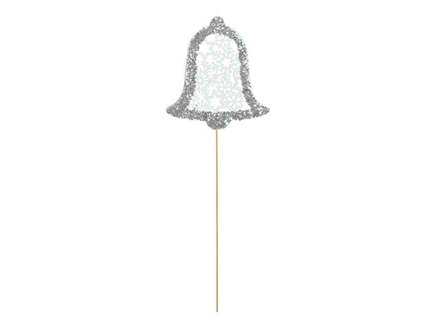 Vánoční dekorace, zápich zvonek v bílé barvě s glitrem. Ozdobte si květináč nebo jinou měkkou plochu touto oblíbenou dekorací. Vhodné do interiéru i exteriéru.