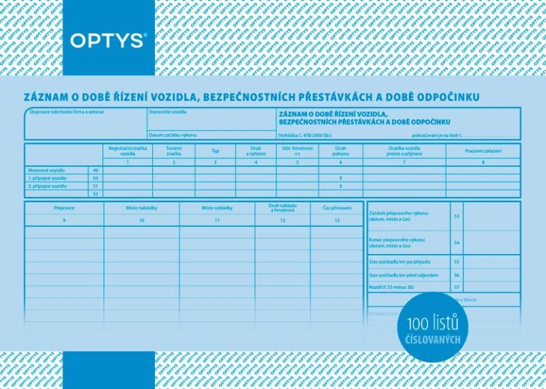 Záznam o době řízení vozidla a bezpečnostních přestávkách