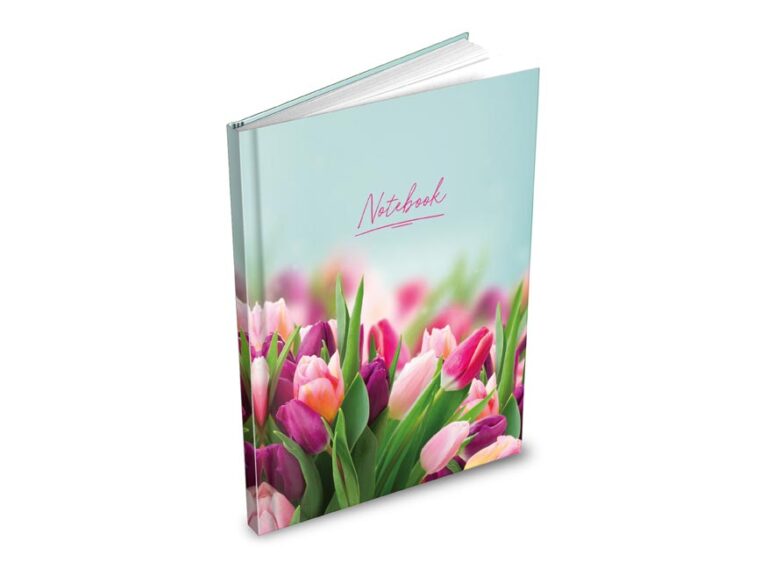 Motiv: tulipány, nápis „Notebook“