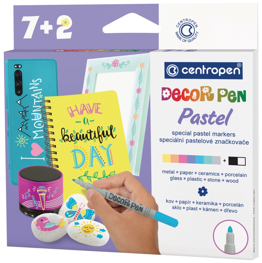 5/20/ speciální barevné PASTELOVÉ značkovače, na povrchy všech běžných materiálů, ERGO držení, pigmentový inkoust na vodní bázi, světlostálý, po dokonalém zaschnutí (min. 4 hod.) se stopa stává odolnou vůči otěru, na porézních površích i vodě, ventilační chránítko, válcový hrot, šířka stopy 1,5 mm